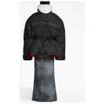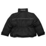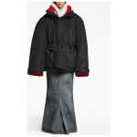 oversized padded parka from BALENCIAGA featuring black, embroidered logo to the rear, padded design, concealed hood, stand-up collar, concealed front press-stud fastening, concealed front zip fastening, long sleeves, drawstring waist, front zip fastening pockets and straight hem. Nylon parka coat