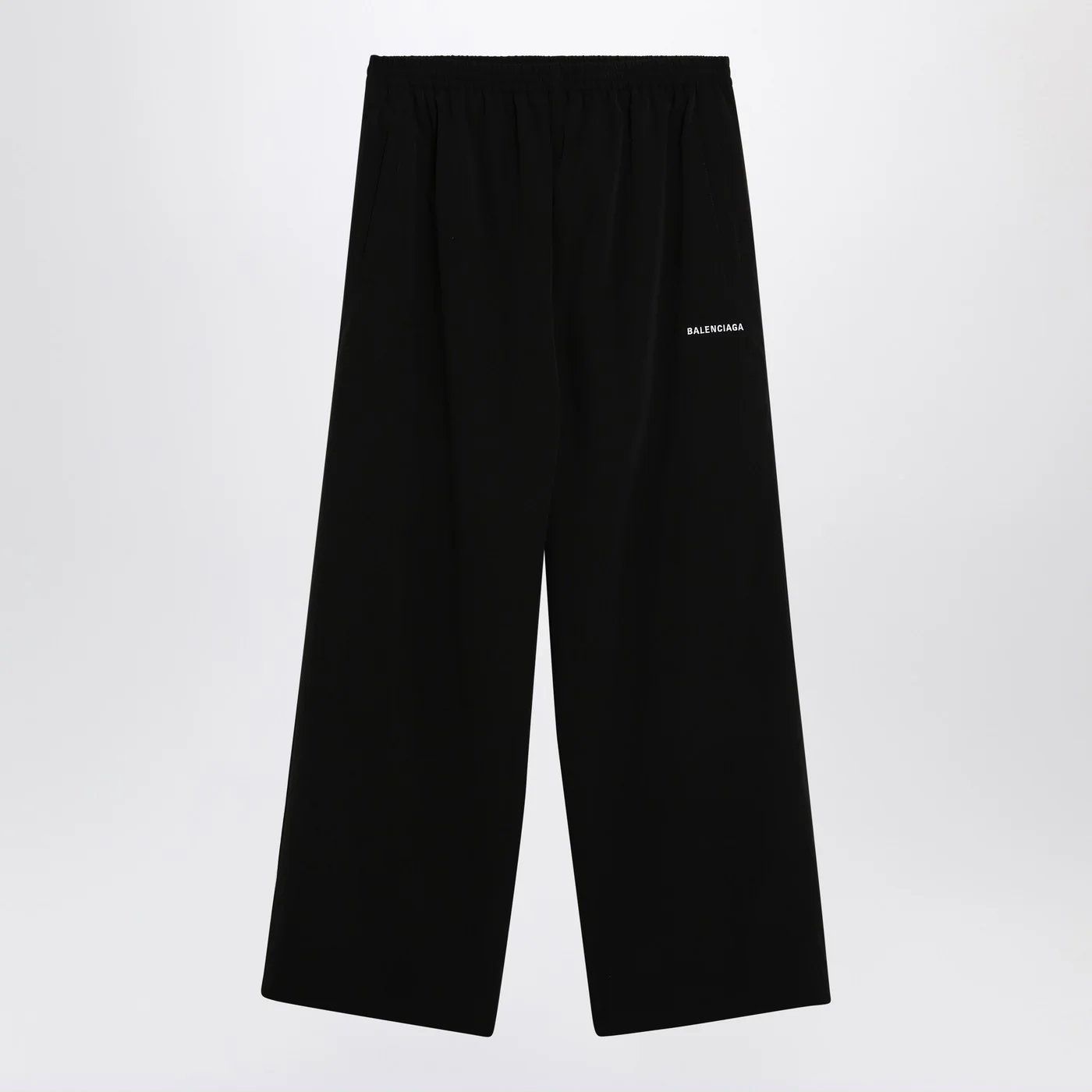 Balenciaga pants in black polyester characterized by a baggyloose fit elasticized waist side welt pockets and front logo print.
