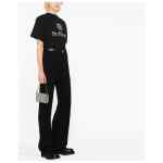 Nero, motivo gessato, modello a vita alta, passanti, chiusura frontale con bottoni e zip e taglio straight. Straight leg trousers
