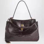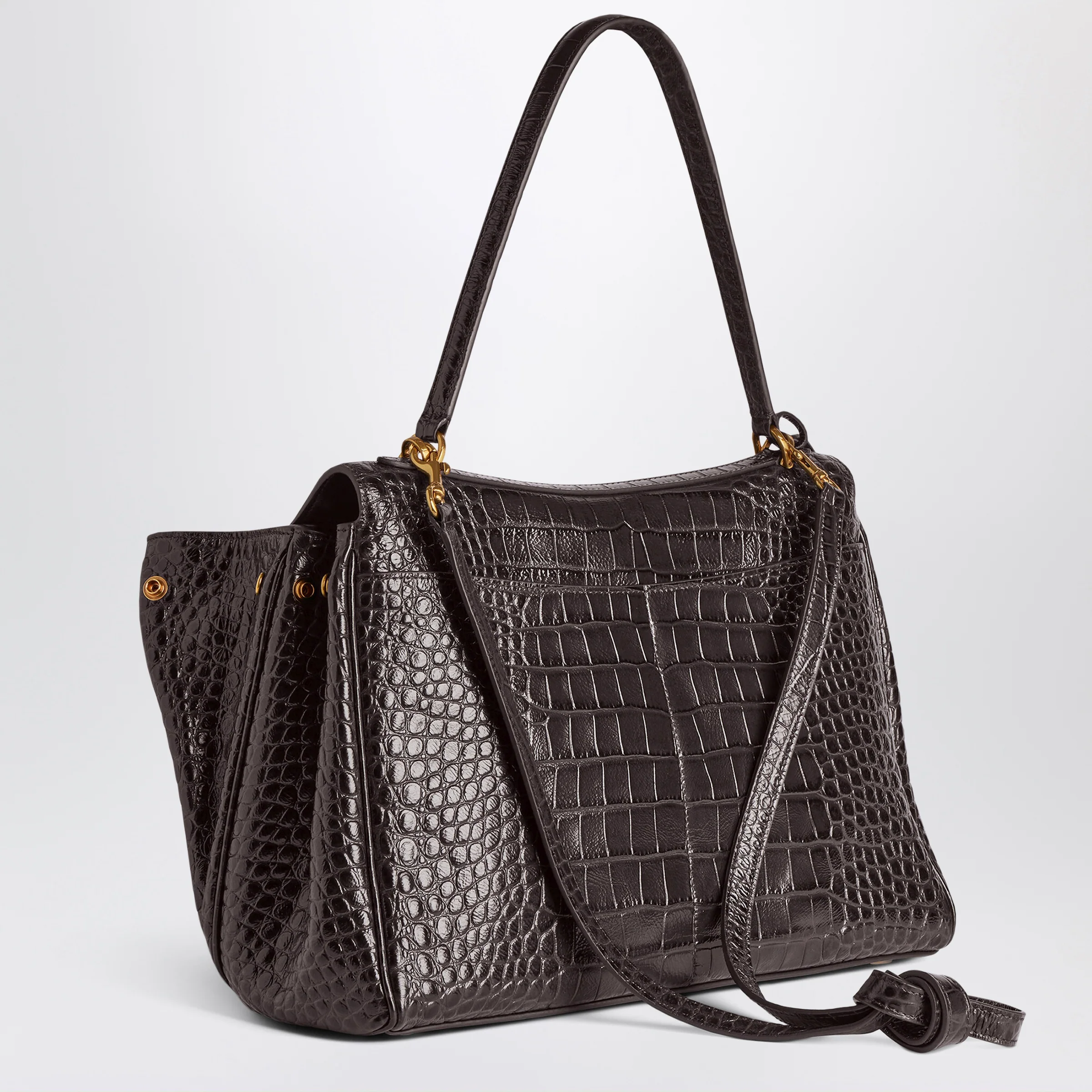 Balenciaga Rodeo medium handbag in espresso crocodile-embossed leather