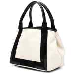 Balenciaga’s compact Cabas S tote is an essential accessory for the new season. Designed to withstand the seasons, the white and navy colourway will remain perennially stylish. Benefiting from multiple ways to wear thanks to the rounded top handles, this medium-sized Cabas tote is finished with a printed logo across the front and an internal zipped logo pouch. Navy Cabas small canvas tote bag