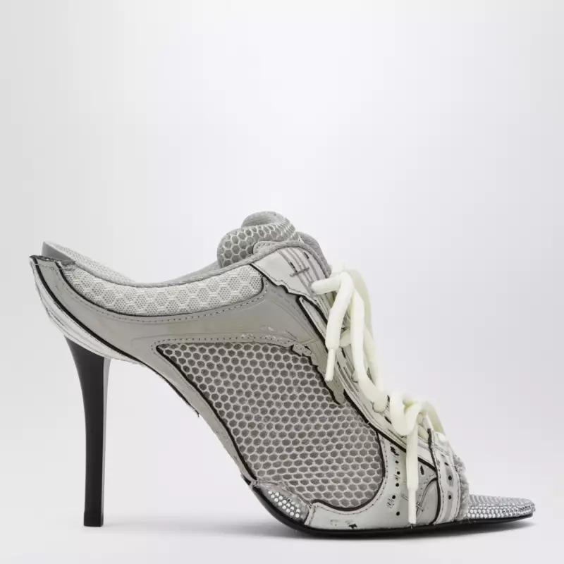 Balenciaga Stapler grey heeled sandals with distressed effect