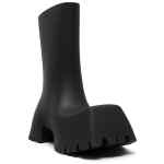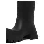 Black rubber Trooper block-heel rubber boots from BALENCIAGA featuring pull-on style, square toe, calf-length, ridged rubber sole and block heel. Trooper Rubber boots