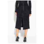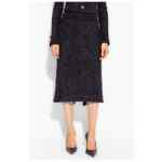 black cotton blend tweed rear zip fastening rear slit straight hem mid-length Tweed midi skirt