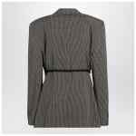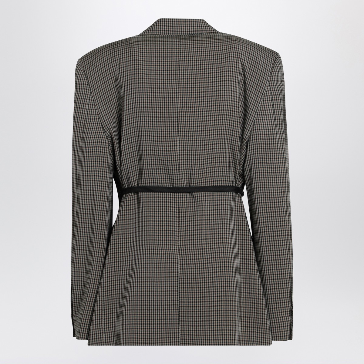 Single-breasted lyocell jacket by Balenciaga with khaki and brown gingham pattern, featuring classic lapels, one welt chest pocket, two front flap pockets, long sleeves with buttoned cuffs, side lace detail and a back vent.