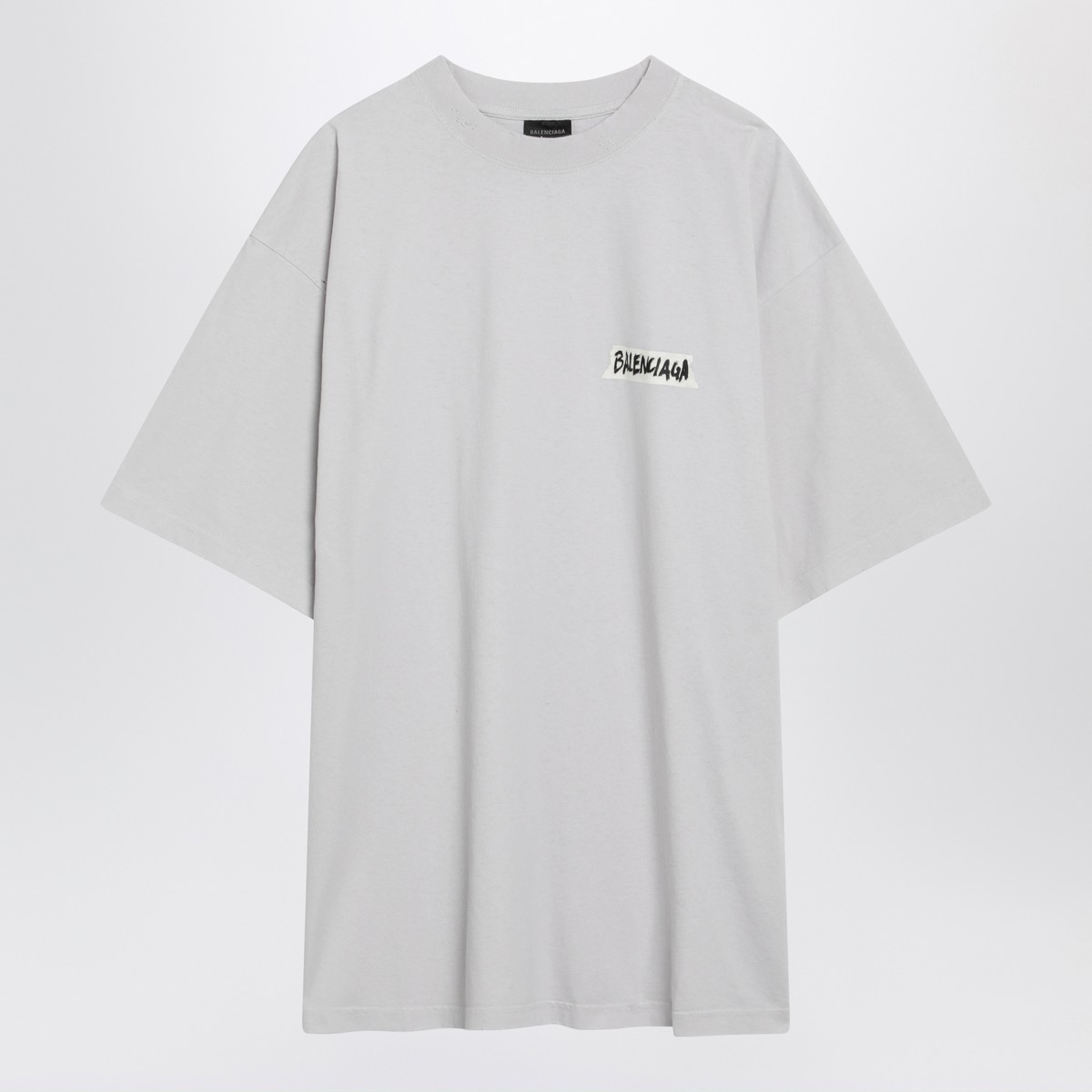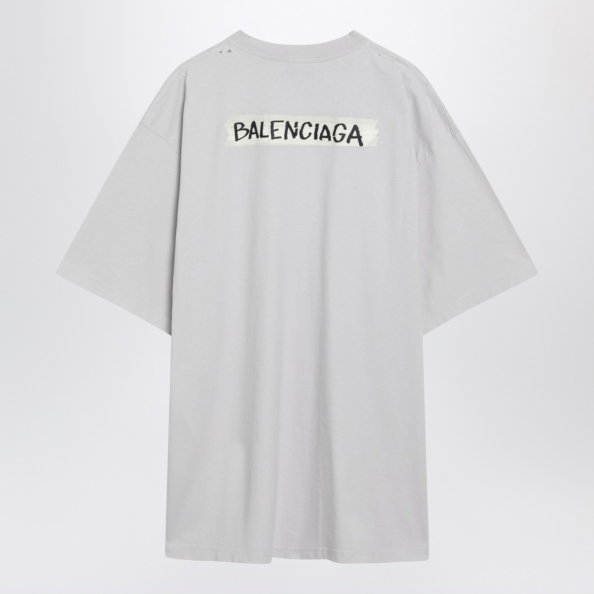Balenciaga white dry jersey T-shirt featuring a ribbed crew neck, short sleeves with dropped shoulders, Masking Tape motif on the front and back and a medium fit.