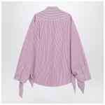 Balenciaga shirt in cotton with white and plum stripes, featuring a front button closure, a chest pocket with logo lettering embroidery, long sleeves with buttoned cuffs and ties, dropped shoulders, and a loose fit.