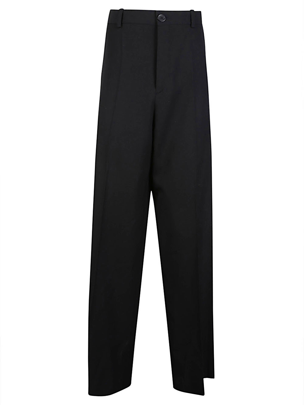 Black trousers, double front, large fit, pata with hidden zip, two front pockets and a pocket behind with button, with folds on the leg, six passers -by in the waist, medium waist,. Wool trousers