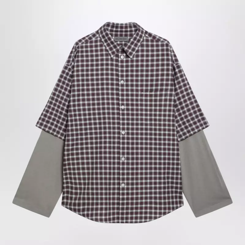 Balenciaga Wrong Sleeve shirt in red/navy check poplin