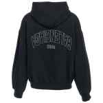 black dropped shoulders front zip closure long sleeves cuffs back embroidery Flipped Uni cotton hoodie
