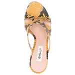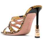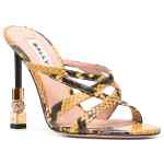 snakeskin-print 110mm leather mules from BALLY featuring mustard yellow, smoky black, calf leather, all-over snakeskin print, gold-tone hardware, branded insole, open toe, round toe, slip-on style and high heel. Carolyn leather mules