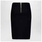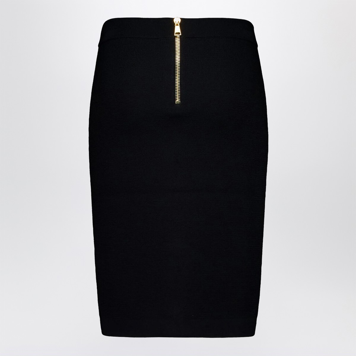 Balmain black tweed pencil skirt, featuring a back zip closure, a high-waisted fitted design, and gold-tone logo buttons on the front.