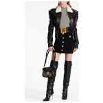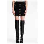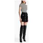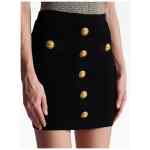 buttoned knitted mini skirt from Balmain featuring black, knitted construction, high waist, ribbed waistband, rear zip fastening, embossed gold-tone buttons and thigh-length. High waist buttoned mini skirt