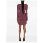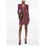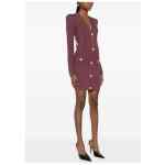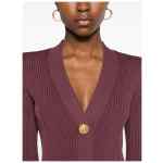 dark violet ribbed knit V-neck two front pockets front button fastening V-necked short dress