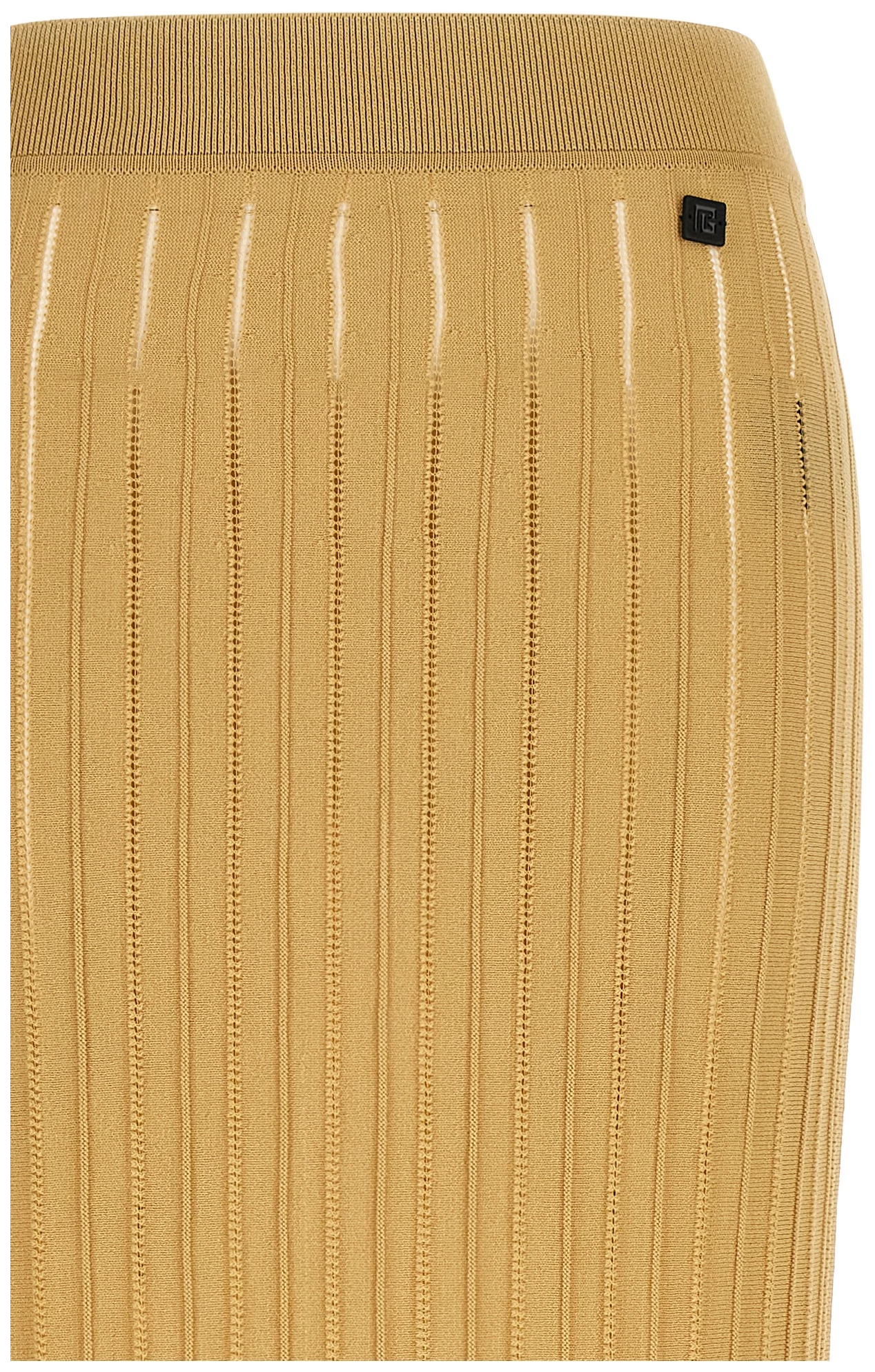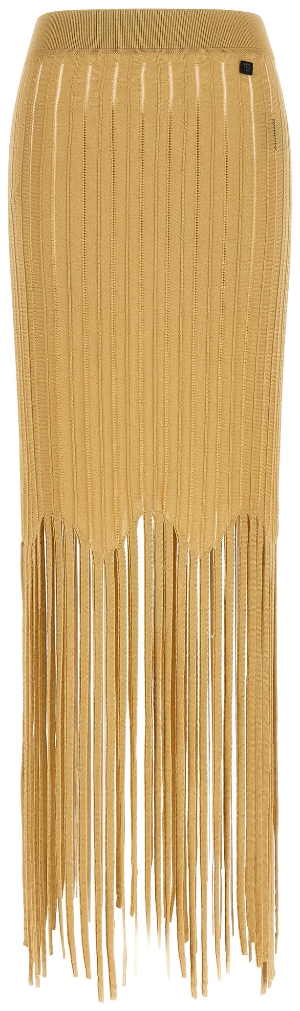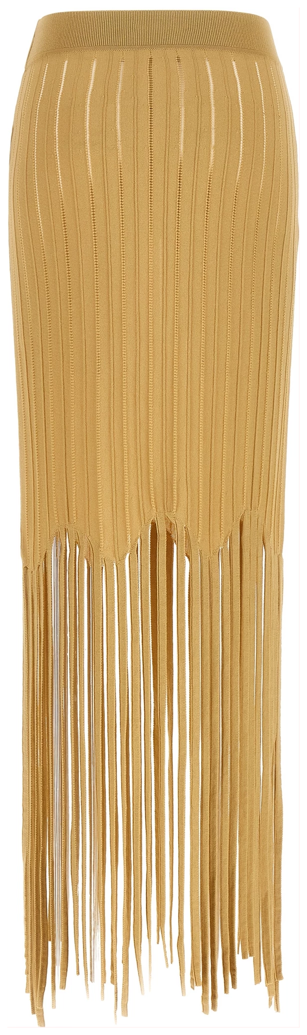 Midi skirt in stretch knit viscose cane, Elastic waistband, Fringes on the hem.