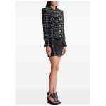 black tweed texture frayed edges gold-tone buttons grid pattern long sleeves Tweed jacket