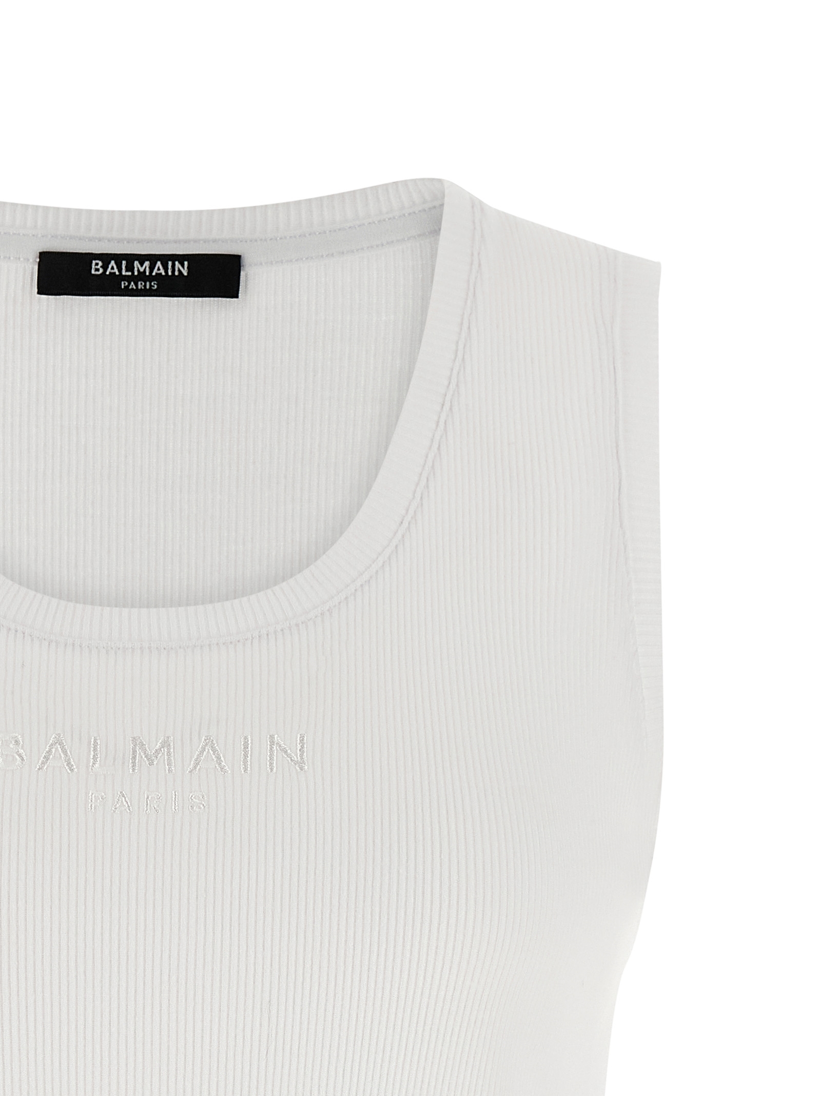 Ribbed cotton tank top with tone-on-tone embroidered logo on the front, And round neckline.