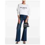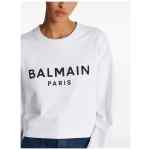 white cotton logo print to the front crew neck drop shoulder long sleeves ribbed cuffs straight hem cropped This item is made from at least 50% organic materials. Learn more about what makes a product Conscious on our Conscious Criteria page. Logo organic cotton cropped sweatshirt