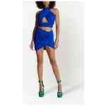 ruched mini skirt from Balmain featuring cobalt blue, ruched detailing, mid-rise, stretch-design and thigh-length. Draped jersey mini skirt