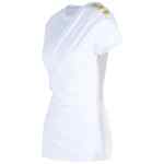white ribbed crew neck shoulder buttons draped front Knotted cotton t-shirt