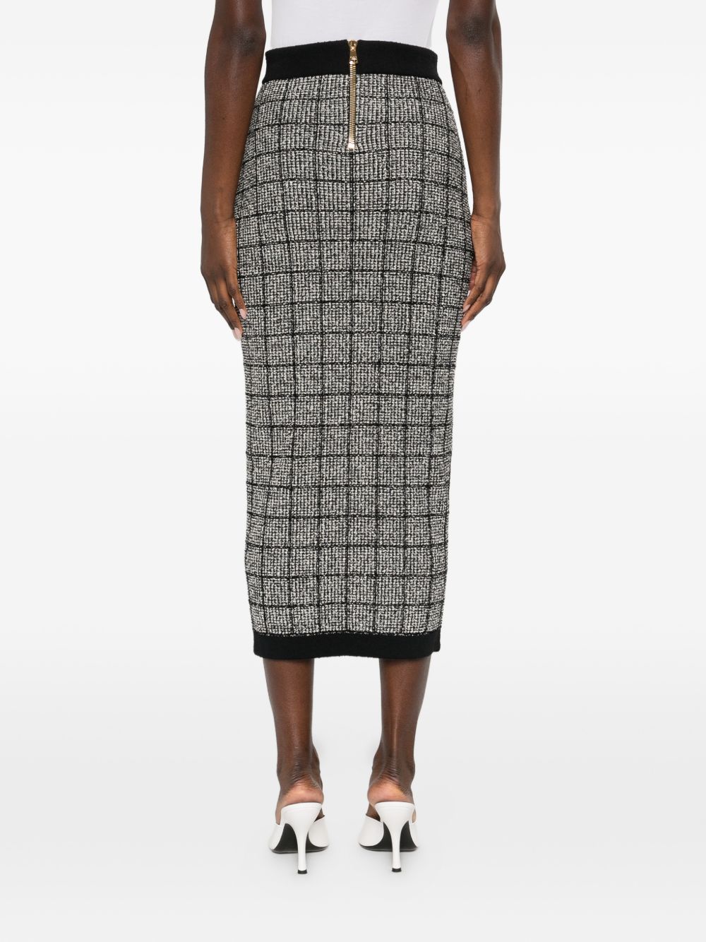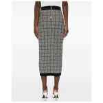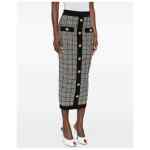 black check pattern gold-tone buttons contrast trims button fastening high waist Tweed long skirt