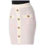 light pink tweed texture decorative buttons back zip fastening Tweed long skirt