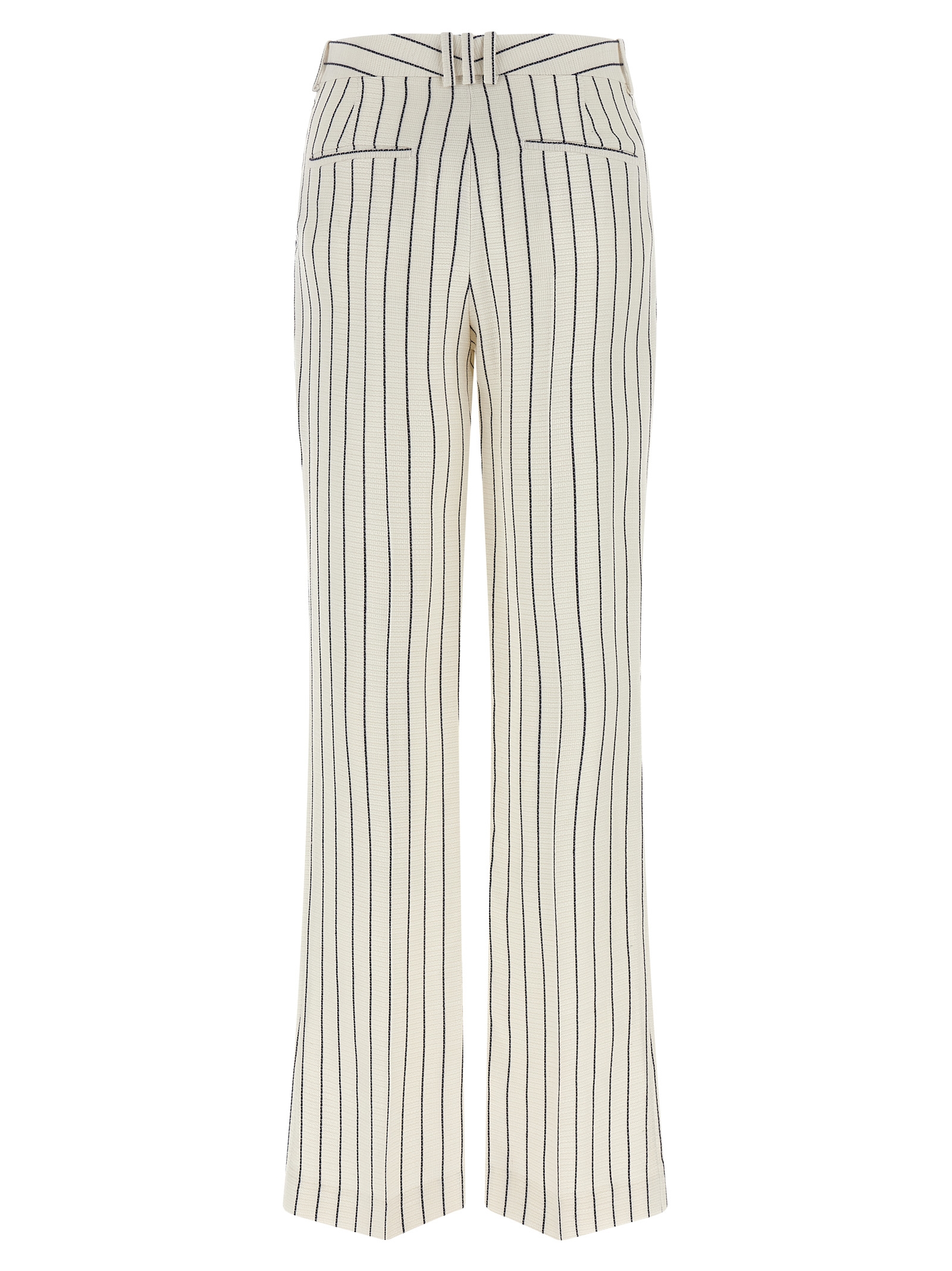 Striped viscose and linen blend trousers, straight leg, stretched pleat, hook and front button zip closure, pockets.
