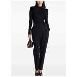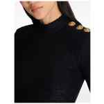 black bouclette texture high neck long sleeves shoulder buttons rear zip fastening Monogram high-neck top