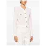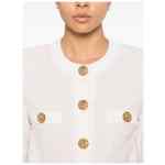 natural rose round collar gold-tone buttons patch pockets tweed knit Tweed cardigan