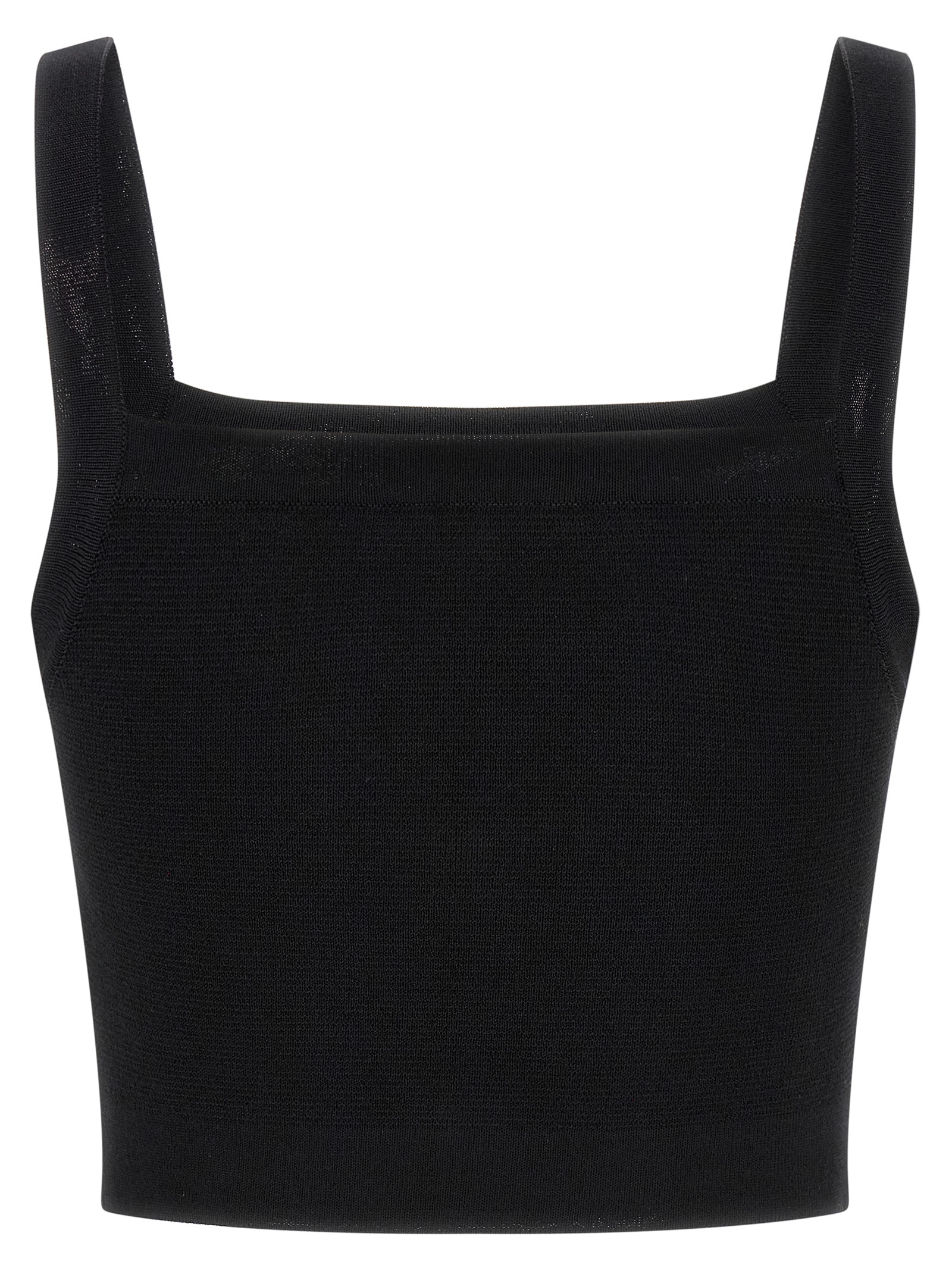Shiny effect viscose knit top with 3 front ‘testa di leone’ cropped button detail with thin straps.