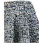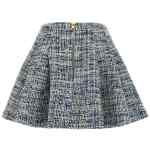 High-waisted flared pleated mini skirt in tweed, Front ‘leone doppia catena’ buttons, Back zip closure, And serge lining.