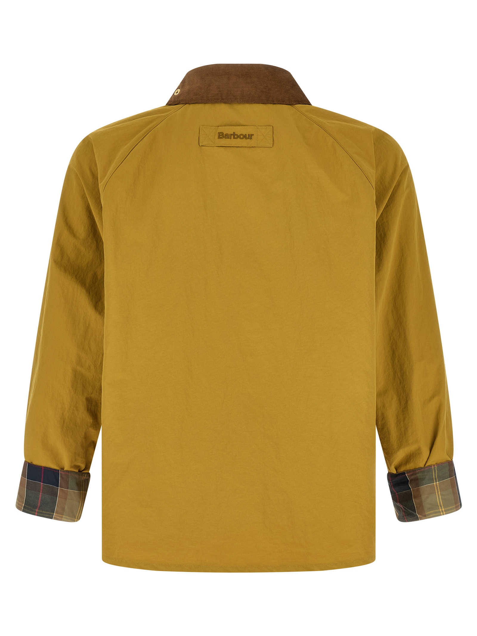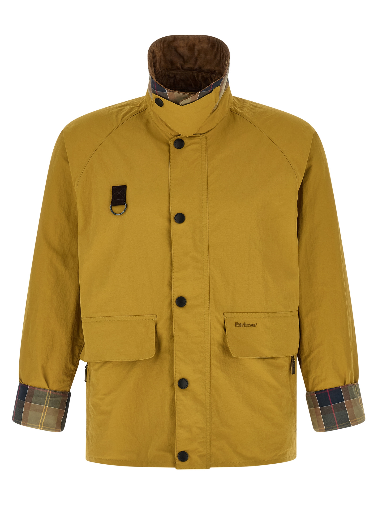 ‘spey icons’ jacket in wrinkled-effect technical fabric with contrast corduroy shirt collar with chinstrap, Removable metal brooch and tartan under collar, Tone-on-tone logo embroidery and front zip and snap button closure, Pockets, Long raglan sleeves with foldable cuffs, Tone-on-tone logo patch on the back, Tartan half lining.