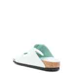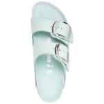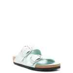 aqua blue leather smooth grain high-shine finish round open toe logo-engraved buckle-strap fastening branded leather footbed suede lining silver-tone hardware Arizona Big Buckle sandals