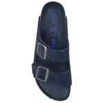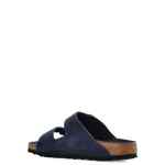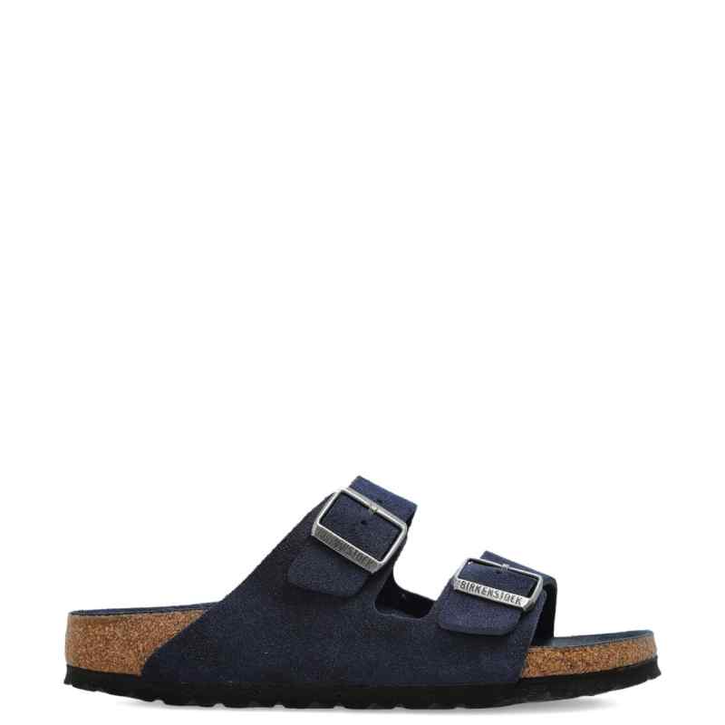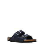 navy blue buckle-fastening straps open-toe flat sole Arizona sandals. Size and Fit – Narrow fit