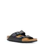 black faux leather double buckle fastening double-strap design round open toe suede lining branded leather insole anatomically-moulded cork footbed EVA outsole Arizona sandals. Size and Fit – Narrow fit