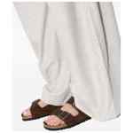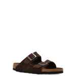 brown suede double straps silver-tone buckle fastenings open toe flat sole Arizona sandals. Size and Fit – Narrow fit
