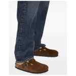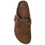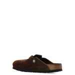 brown double buckled straps round toe slip-on style cork platform lug rubber sole Boston slippers. Size and Fit – Narrow fit