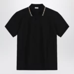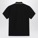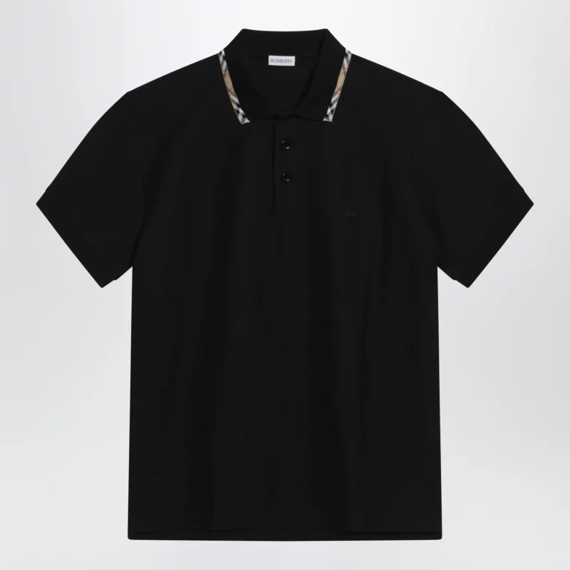 Black cotton polo with Check detail by Burberry