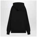 Black cotton sweatshirt from Valentino featuring a hood with drawstring, long sleeves, a pouch pocket on the front, a contrasting Chez Valentino print on the chest, and elasticated ribbed trim.
