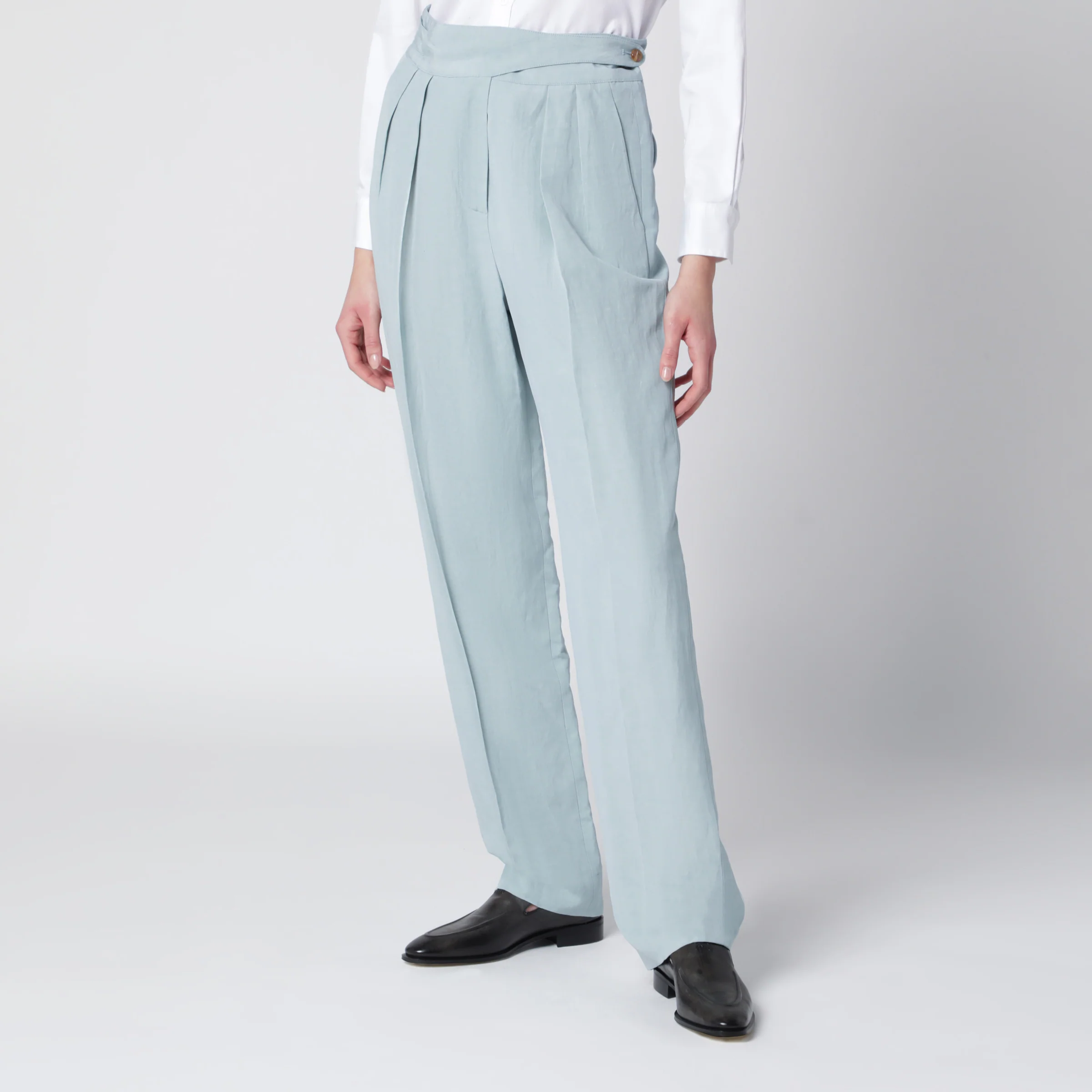Blazé Milano Tomo light blue trousers in silk and linen