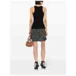 black stretch-cotton ribbed knit rhinestone embellishment embossed logo to the front crew neck sleeveless straight hem Logo ribbed cotton tank top