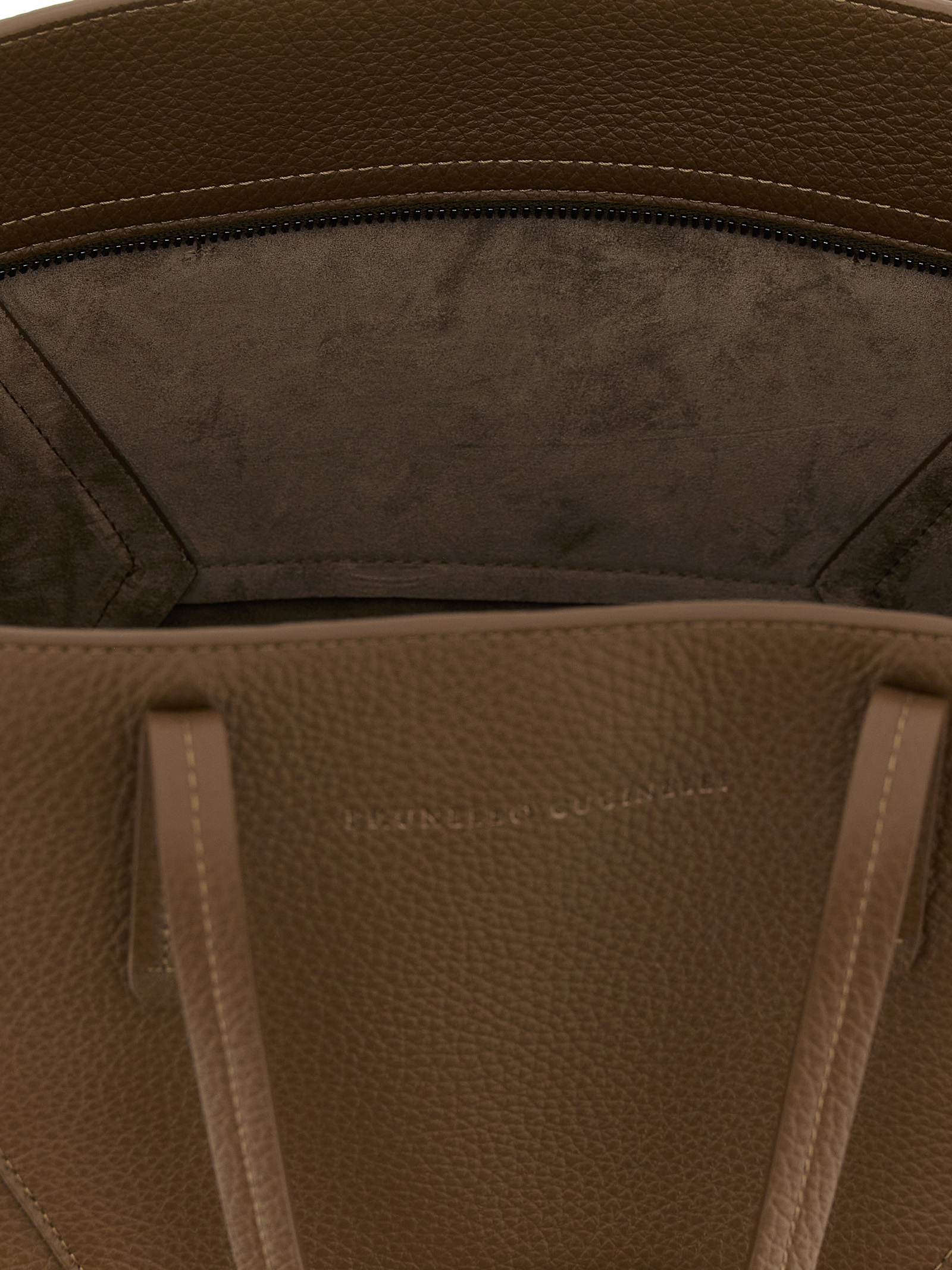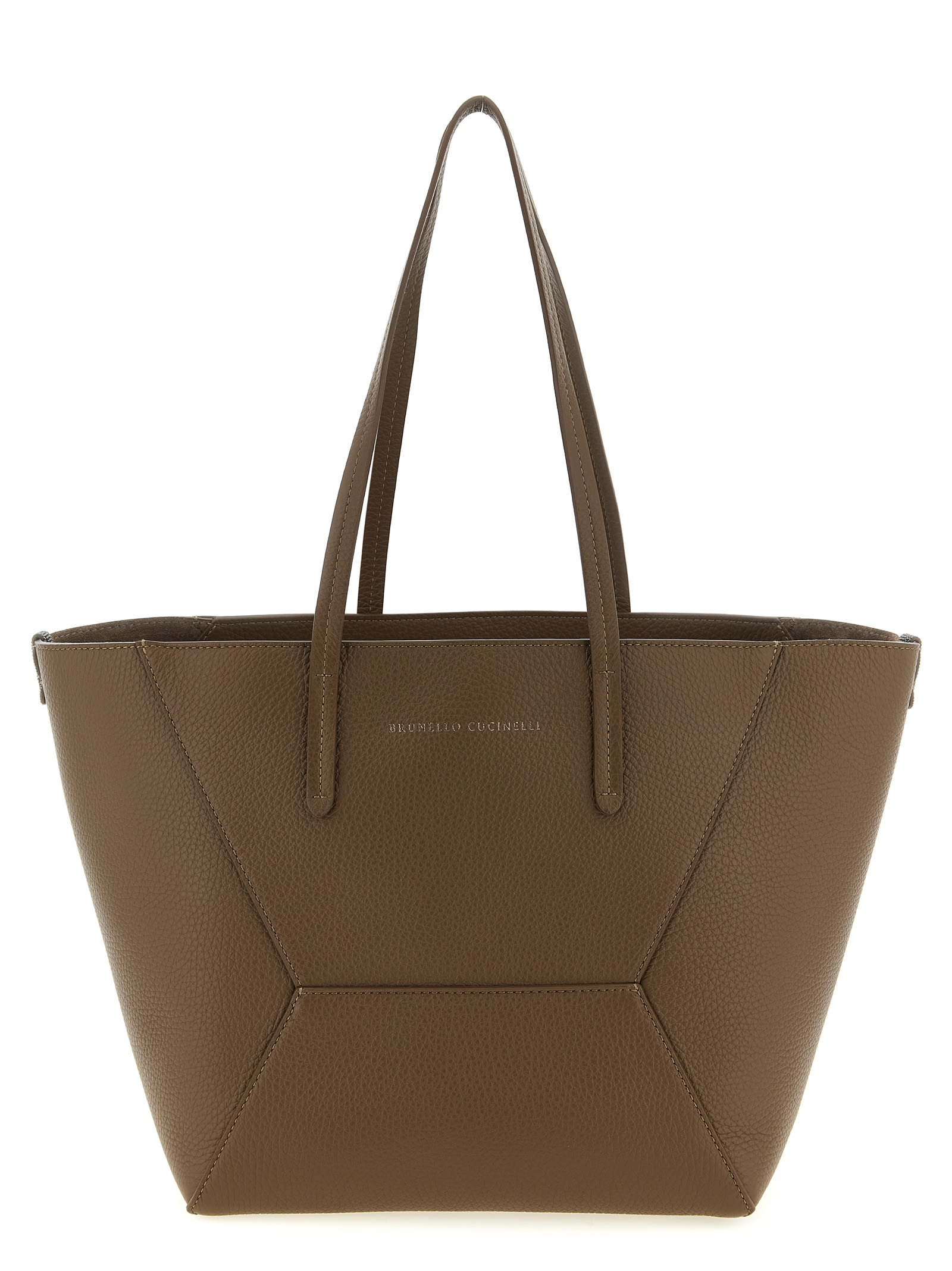 ‘bc duo’ shoulder bag in hammered calf leather, Panel construction, Double fixed handle, Front embossed logo, Top zip closure, Side monile details with internal snap hook to change capacity, Removable clutch.