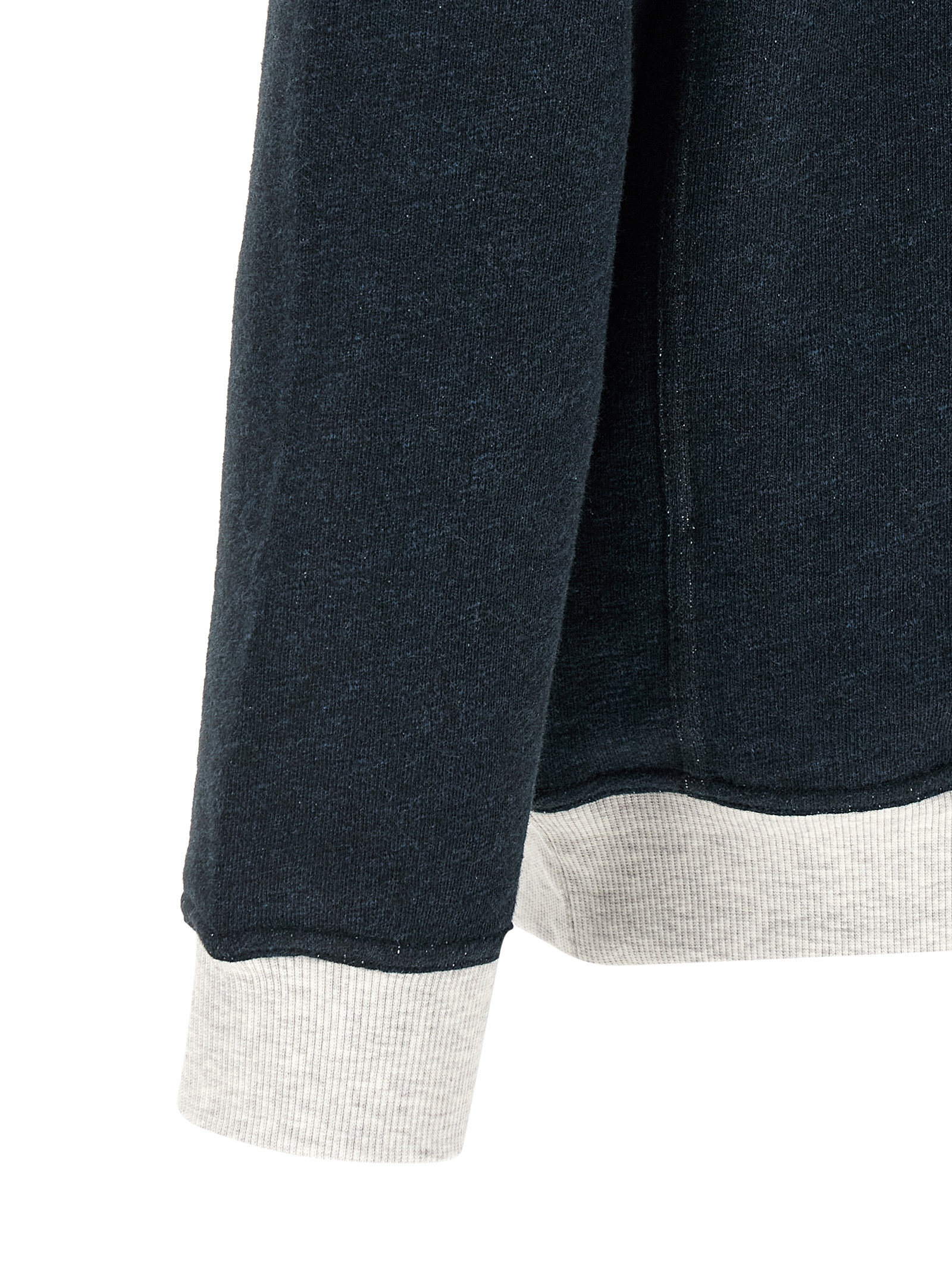 mélange with contrasting ribbed stretch knit details, Front print, Crew neck, Long sleeves with cuffs and dropped shoulder, And headband.