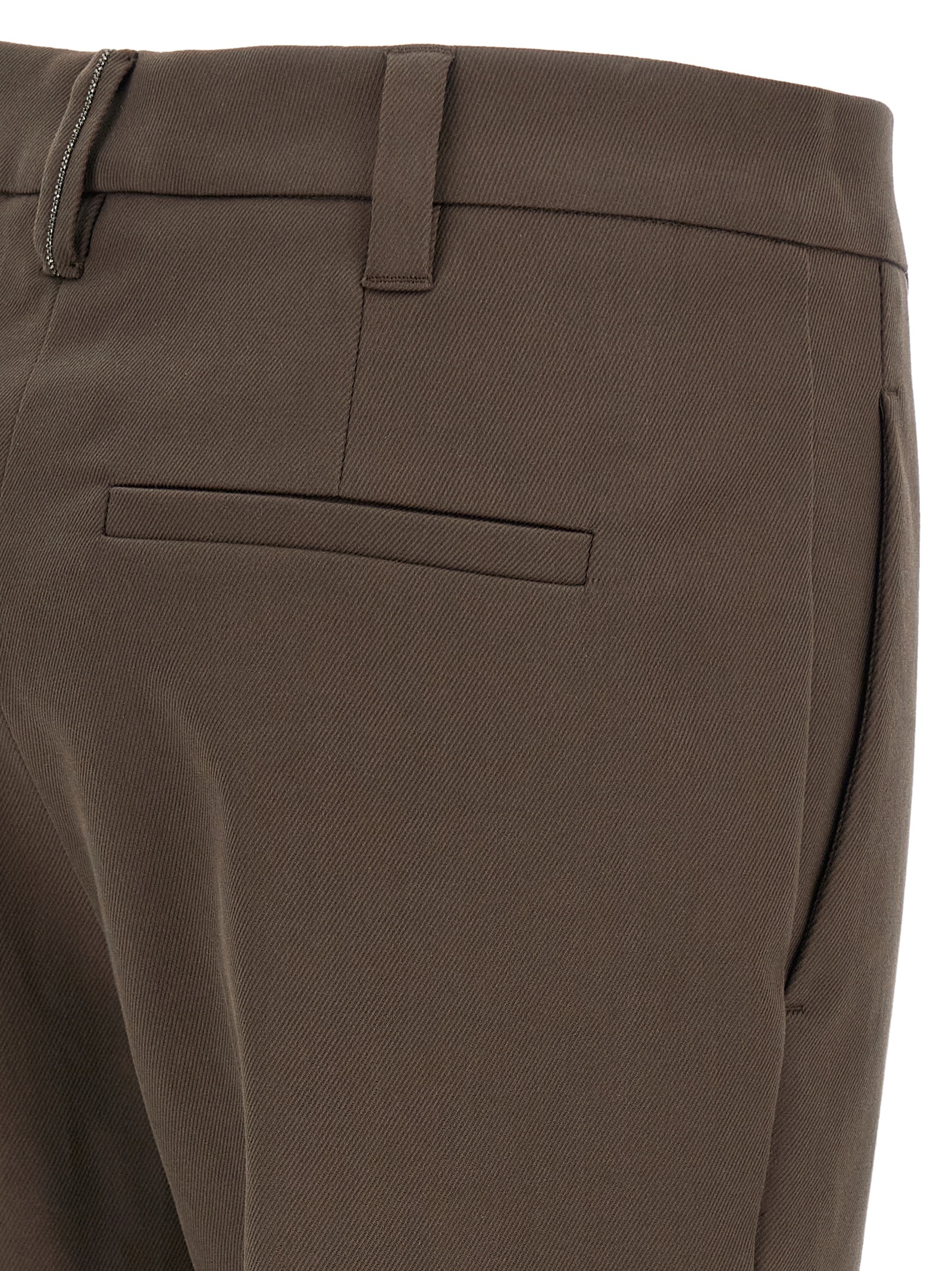 Micro striped cotton trousers, Stretched pleat, Front zip and button closure, Pockets, Straight leg, Back monile detail.