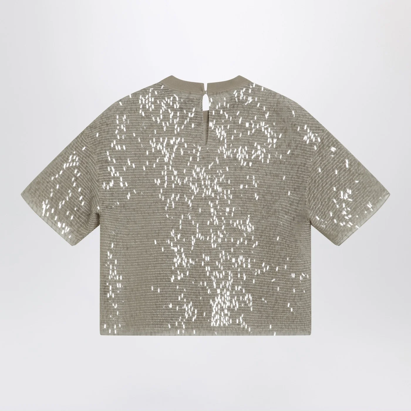 T-shirt by Brunello Cucinelli with crispy silk base and rectangular micro sequin embroidery