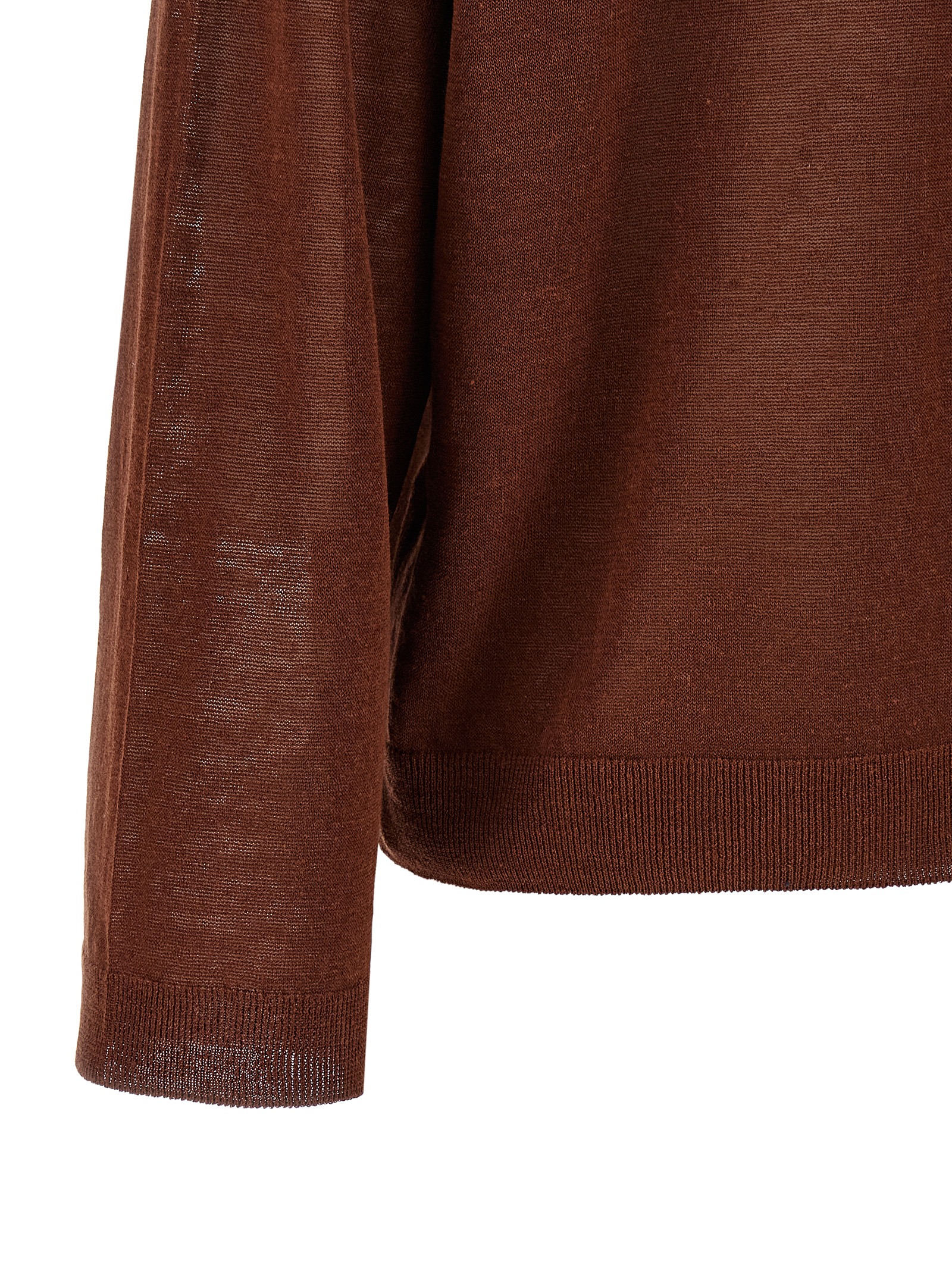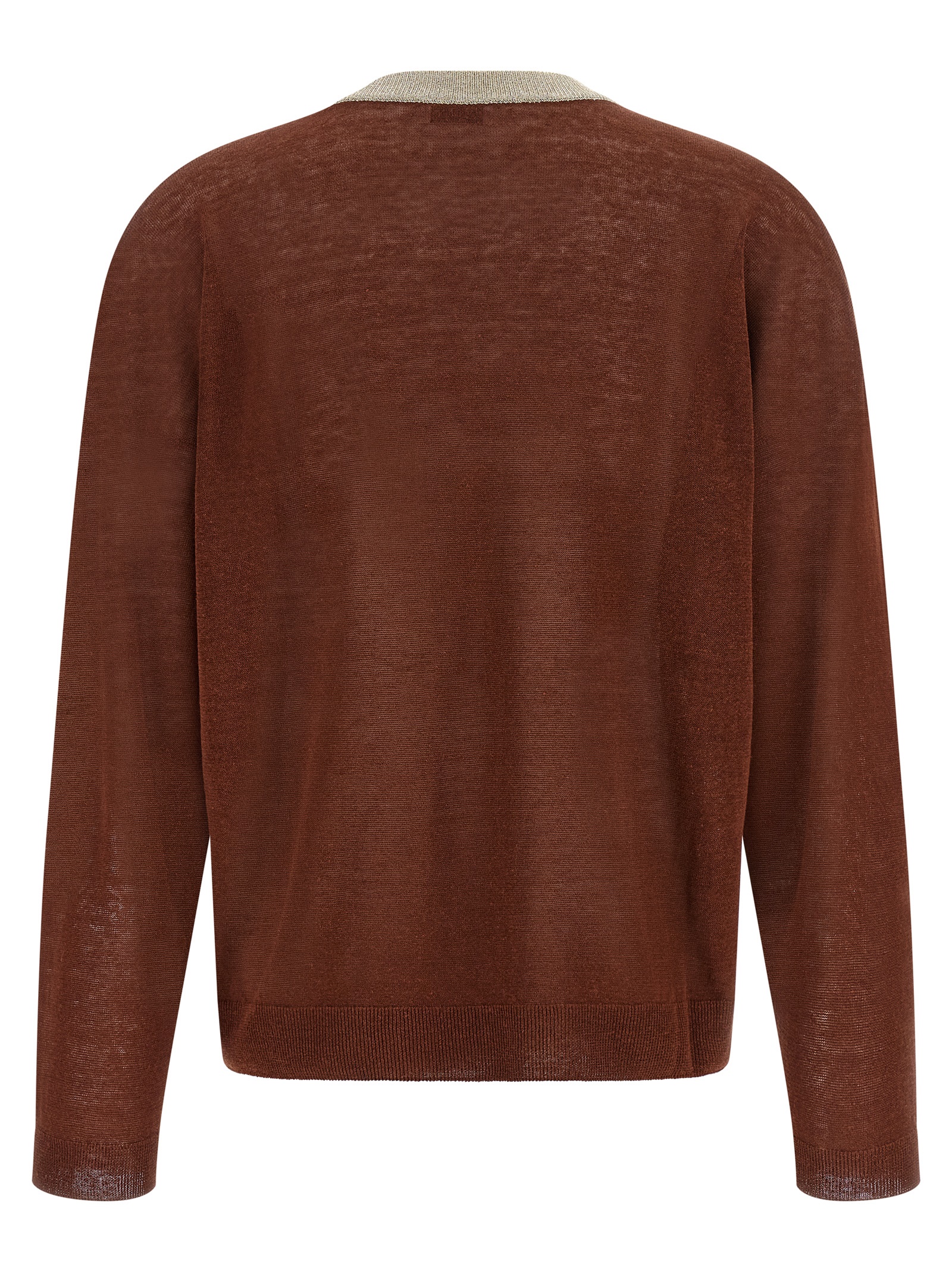 Semi-transparent linen sweater, ‘dazzling collar’ crewneck in viscose woven with lamé thread,