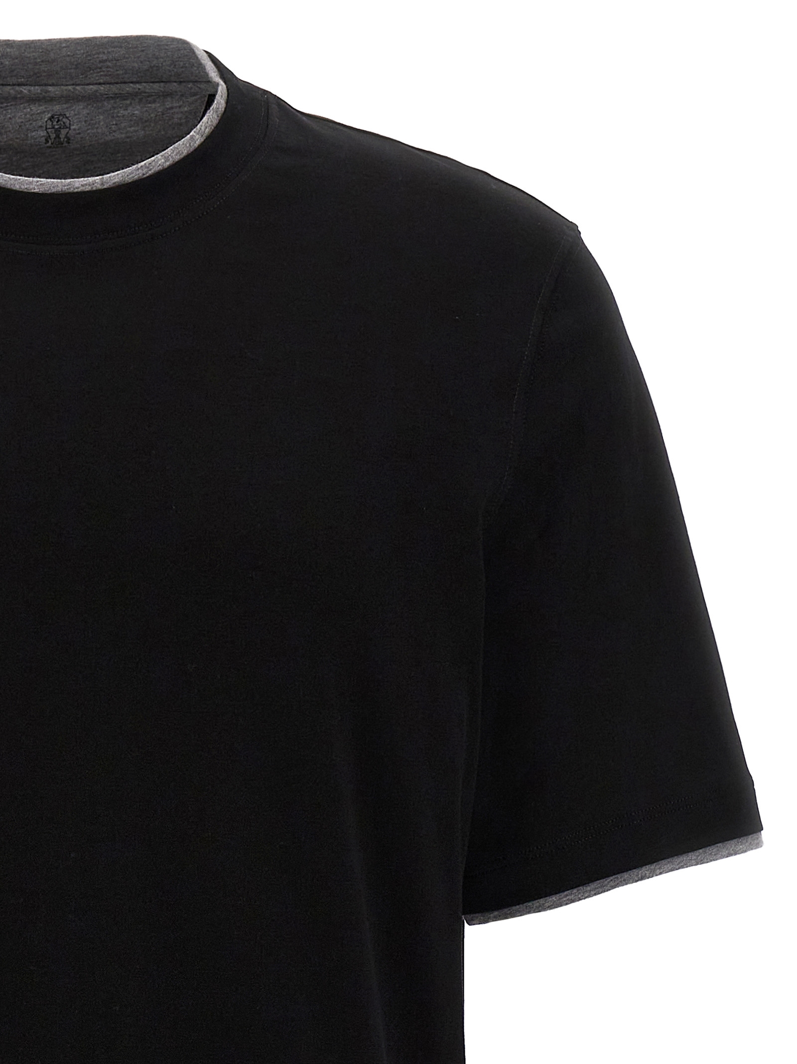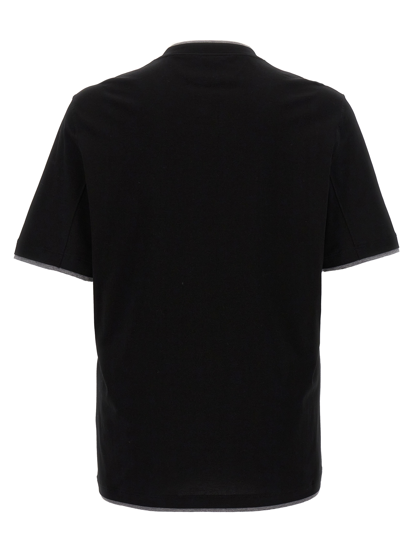 Cotton t-shirt with double hem, crew neck, short sleeves.