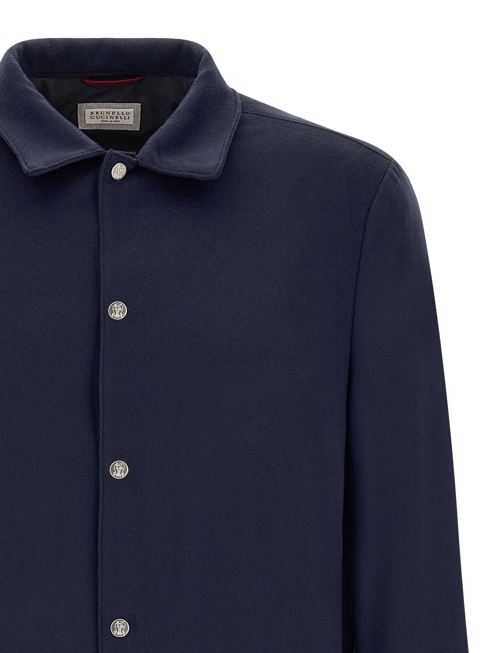 Light cashmere flannel overshirt, Shirt collar, Front snap button closure, Low pockets with snap button, Long sleeves with adjustable cuffs, Nylon semi-lining, Two inner pockets with button closure and pen pocket. Size and Fit – true to size fit