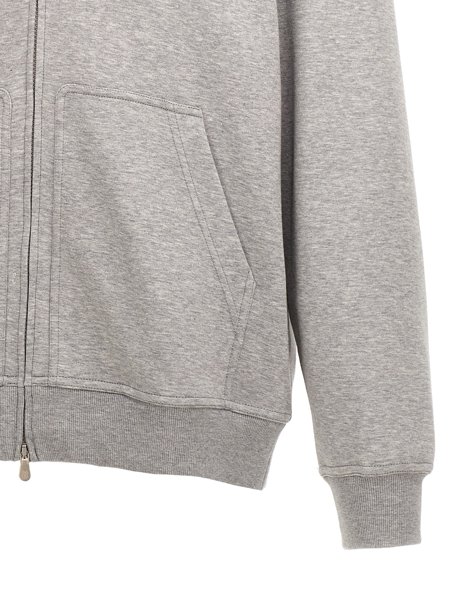 Cotton blend hoodie with zip closure, pockets, long cuffed sleeves.