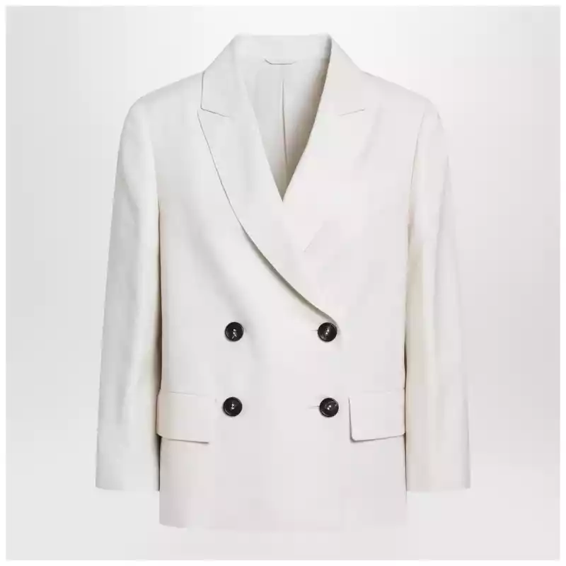 Brunello Cucinelli Ivory fluid twill jacket in viscose and linen